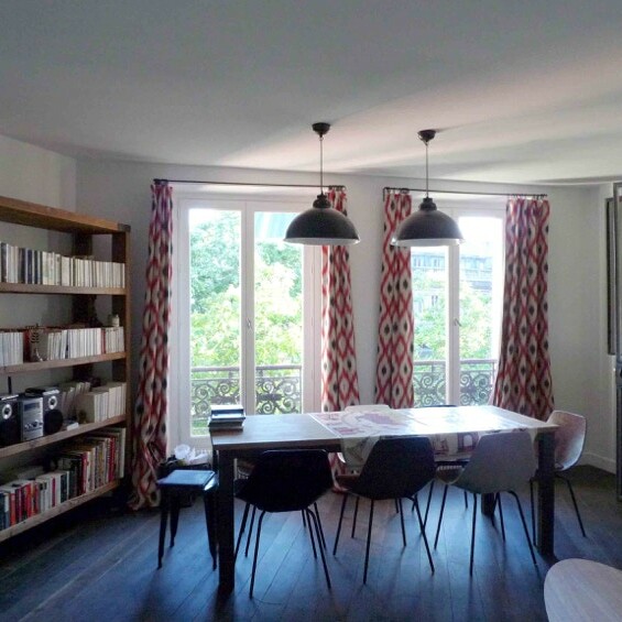 Pour maintenir la perception de l’enfilade des quatre fenêtres sur la rue, nous avons décidé d’installer une verrière. Ce choix judicieux permet de préserver la transparence et l’ouverture de l’espace tout en offrant la possibilité de moduler l’intimité grâce à des rideaux en chanvre, dissimulant ou révélant les zones à volonté.